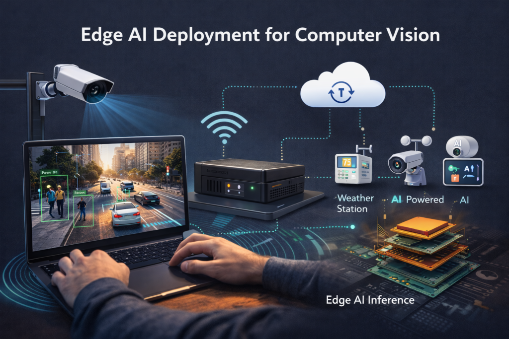 Edge AI computer vision systems process video locally for privacy.